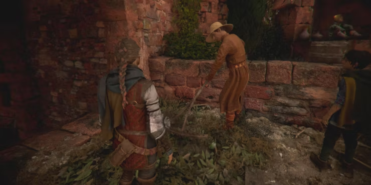 길을 따라 계속 가다 보면 매일 뉴스를 읽고 있는 남자가 있는 광장이 나옵니다. 계속 직진하면 Amicia가 집 지붕을 발견할 수 있다고 말할 것입니다.