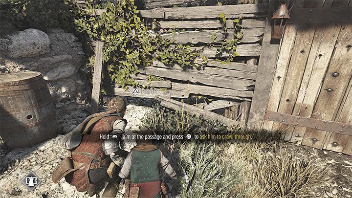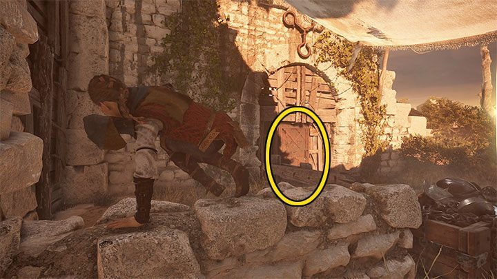 사용 가능한 유일한 경로를 선택하고 점프한 위치에 도달하십시오. Amicia는 직접적인 전투에서 그를 이길 수 없기 때문에 도망쳐 야 하는 적대적인 양봉가를 만나게 될 것 입니다.