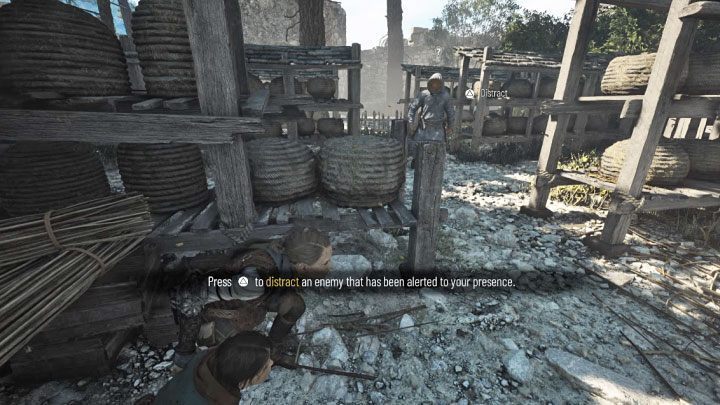 마차를 타는 동안 아무 것도 할 필요가 없습니다. 곧 다시 양봉가와 대결하게 됩니다. 아미시아를 다시 장악하면 다시 잠입을 시작해야 합니다 . 당신은 무장하지 않았으므로 그들을 피할 수 있습니다. 키 큰 풀밭에 숨어 적이 돌아서거나 멀어질 때까지 기다리십시오.