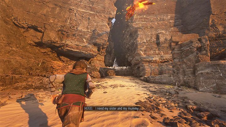 Hugo를 따라 성터로 가십시오. Lucas는 숨바꼭질 을 제안합니다 . 숨을 수 있는 시간은 10초입니다. 가까운 폐허로 달려가 작은 벽을 뛰어넘는 것이 좋습니다.