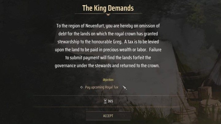 영주 소개 가이드 의 이 페이지는 세금 징수원과 왕실 세금을 지불해야 하는 왕의 요구 퀘스트에 중점을 둡니다. 이러한 역학에 대해 걱정할 가치가 있는지 알게 될 것입니다.