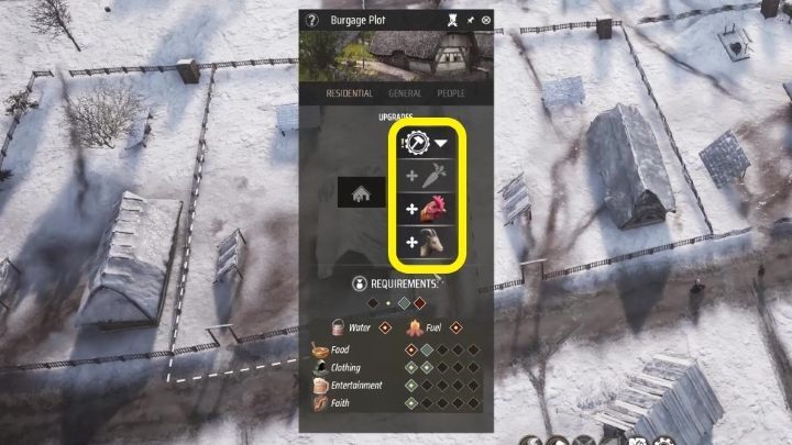 Burgage 줄거리는 "정원"이있는 일종의 집입니다. 그러한 건물의 면적과 마당의 크기를 직접 결정할 수 있습니다. 당신의 시민들은 그들 안에 살 것입니다. 2가지 방법으로 업그레이드할 수 있습니다.