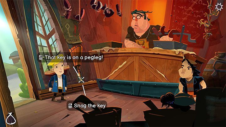 걸레를 훔쳐 SCUMM Bar에서 탈출할 수도 있습니다. 요리사는 당신이 나가는 길에 당신을 막을 것입니다 - 이것을 하면 비밀 업적이 잠금 해제됩니다.