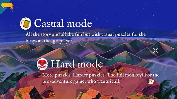 - 하드 모드는 고전적인 난이도 수준 입니다. 게임 플레이를 전형적인 포인트 앤 클릭 어드벤처 게임으로 만들고 싶다면 선택해야 합니다. 더 많은 퍼즐과 복잡성을 기대하십시오.