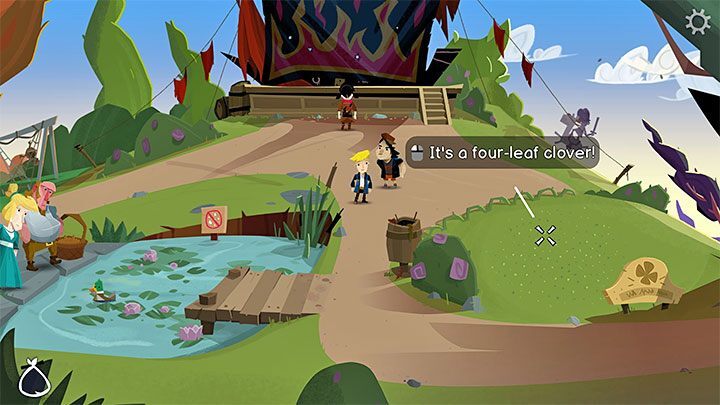 이제 빵을 훔칠 수 있습니다 . 인벤토리에서 선택하고 오리를 클릭하여 먹이를 줍니다(Boybrush는 반대편에서 탱크에 도달합니다).