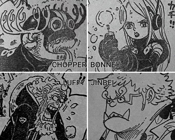그런 다음 문제는 Luffy의 그룹이 처음으로 초점을 맞춘 Egghead Island로 관점을 전환합니다. Pacifista 부대는 그룹의 나이와 외모를 바꾸는 Bonney의 능력 덕분에 그들을 찾는 것을 중단했습니다. 보니와 징베는 이제 아주 어리고, 쵸파 와 루피는 나이가 아주 많아 목록의 마지막은 70세입니다.