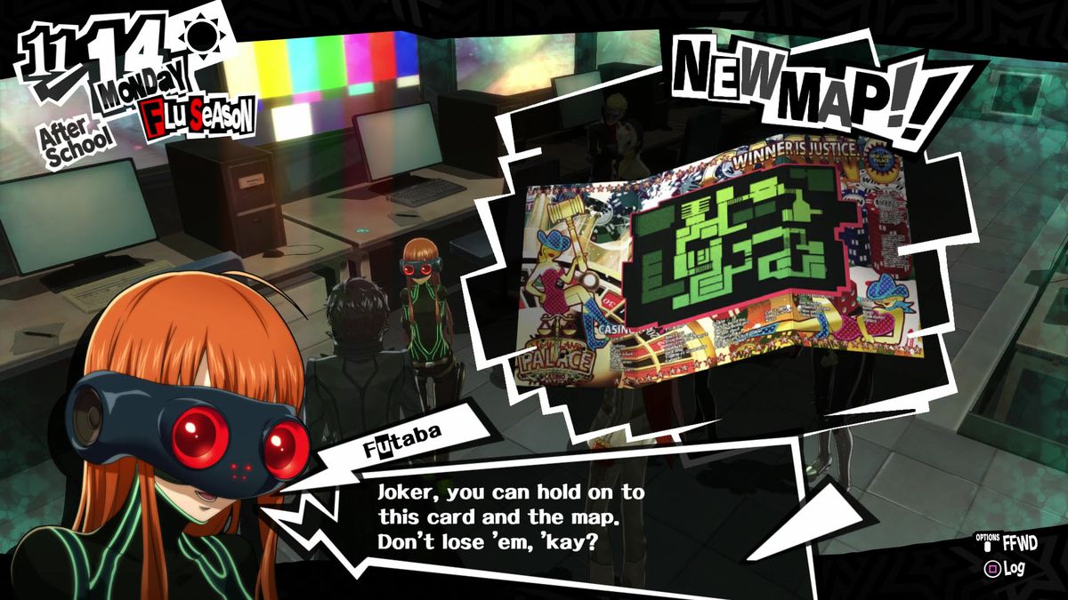 거대한 그림자에게 다가가 공격하세요. Psi 능력을 사용하면 빨리 내려갑니다. 그는 많은 회원 카드 를 떨어뜨릴 것 입니다. Futaba가 제어판에 접근하여 새 카드를 등록합니다. 그녀는 또한 바닥의 지도를 얻을 것입니다.