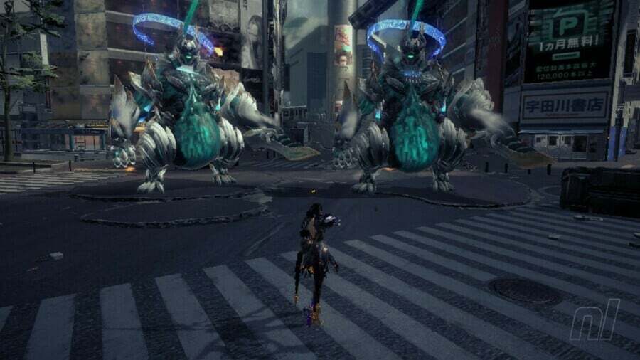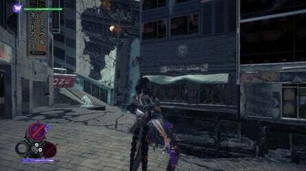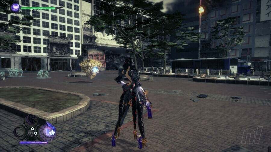 Bayonetta 3에서 우리의 첫 번째 하나는 Shibuya 지역에서 시작하는 것처럼 아래와 같이 오른쪽 골목으로 나옵니다. 다운된 Homunculus를 작은 Bayo로 실행하여 사용하면 그녀가 밀어낼 것이고 당신은 빠른 퍼즐을 풀어야 할 것입니다.
