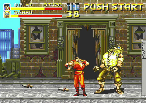 누구나 놀 수 있는 간단한 조작으로 사용하는 버튼은 2개만. 펀치와 점프, 그리고 펀치와 점프 버튼을 동시에 눌러 무적 기술의 메가 크래시를 발동할 수 있다. 「파이널 파이트」의 액션은 이것이 모두. 심플한 게임성이면서 적을 걷어차는 것이 통쾌하고, 반복해서 놀고 싶어지는 매력이 있는 것이다.