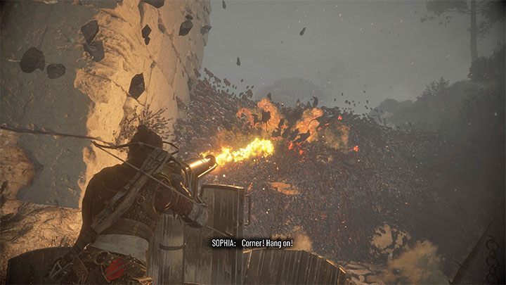 그러나 대부분의 적들은 갑옷과 모자를 착용 합니다. 그들에 맞서는 석궁(특히 볼트 회수 업그레이드가 있는 경우), 타르 + 점화 장치 조합(밀접한 그룹을 점화하는 데 특히 유용) 및 적이 접근하면 슬링으로 항아리를 쏘는 것을 사용해야 합니다.