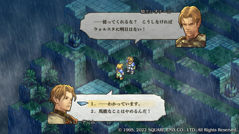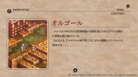 본고에서는 본작의 플레이 필과 함께, 슈퍼 패미콘판 「택틱스 오우가」나 「운명의 고리」로부터의 변경점 등에 대해서도 접해 간다. 덧붙여 본 기사에서는 일부 스포일러를 포함한 내용도 기재하고 있으므로 주의해 주었으면 한다.