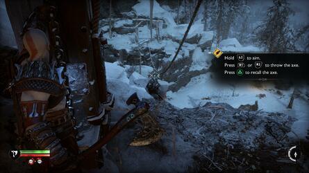 동굴 밖으로 나오면 즉시 비요른 이라는 거대한 곰의 공격을 받을 것이므로 준비를 하십시오 . 이것은 매우 간단한 전투이며 실제 전투보다 더 많은 튜토리얼 역할을 합니다. 상당히 잘 전달된 공격을 피하고 기회가 있을 때 공격하십시오. 전투 중간에 Spartan Rage 미터 를 실행하라는 메시지가 표시 되므로 L3 및 R3 버튼을 동시에 클릭하고 큰 곰을 쓰러뜨리십시오. 언제든지 건강을 보충해야 하는 경우 경기장 주변에 많이 흩어져 있습니다.