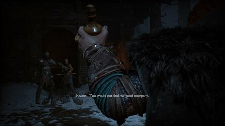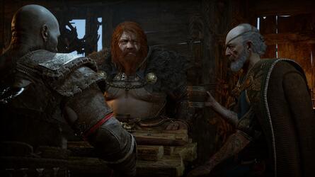 Raiders 가 처리 되면 훨씬 더 일찍 퀘스트에서 사용한 벽의 균열을 통해 Atreus를 따라 집으로 돌아갑니다. 그런 다음 집으로 향하는 길을 따라 안쪽으로 향하면 잠자리에 들 준비가 됩니다. 물론, 당신의 휴식은 짧습니다.