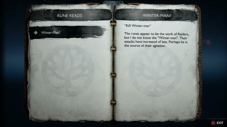 Hel-Raiders 직후 , 바로 앞의 경로 에는 벽에 Rune Reads 라고 불리는 일종의 로어 가 있습니다. 놓치는 것은 거의 불가능하므로 코덱스와 상호 작용하여 Codex에 추가해야 합니다.