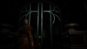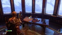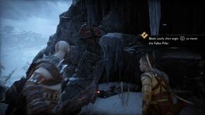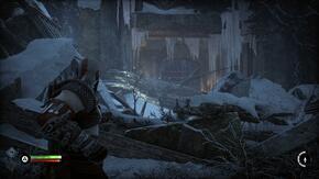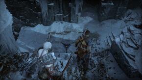 사원을 통과하면 무너진 기둥이 길을 막고 있는 지역이 나옵니다. 그것을 저어보십시오. 그러면 그것이 나무 줄기에 붙어 있다는 것을 알게 될 것입니다. 리바이어던 도끼 를 던지면 이를 잘라낼 수 있으며 , 마지막으로 기둥을 제거할 수 있습니다. 계단을 올라갑니다. 아트레우스는 당신을 비밀 출입구로 안내할 것이고, 크레토스는 더 많은 설명을 위해 그를 따라 안으로 들어갈 것입니다.