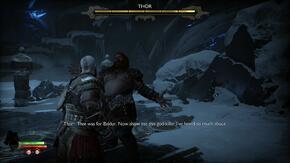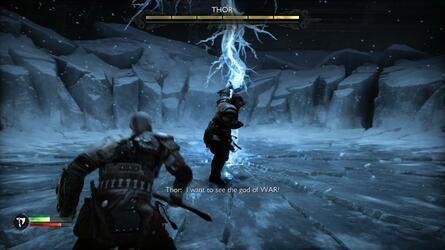 이제 싸울 시간입니다. Thor 에 대한 투기장에 빠지게 되며 처음에는 Leviathan Axe 가 없습니다 . 당신이 가진 모든 것으로 천둥의 신을 공격하고 그의 돌진하는 잡기 공격을 피하십시오. 충분한 피해를 입히면 컷신이 발동되어 크레토스가 리바이어던 도끼 를 소환하게 됩니다. 계속해서 Thor 와 싸우면 결국 그는 당신을 밖으로 쏘아 올릴 것입니다.