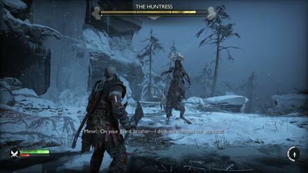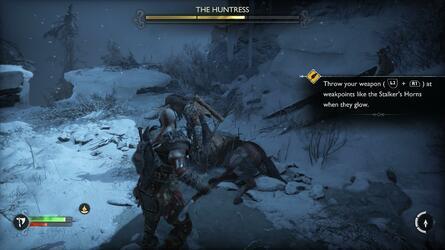 Huntress 는 해당 지역의 모든 Raiders 를 죽인 신화적인그녀를 처리할 때입니다. 다행히도 그녀는 상당히 직설적입니다. 덜덜 떨리는 다리를 피하고 틈이 생기면 공격합니다. 그녀는 땅에 불 화살을 쏠 것이고 당신도 피해야 하는 굴레를 피해야 합니다. 그녀의 뿔이 빛나기 시작할 때까지 기다렸다가 리바이어던 도끼 를 던져 그녀를 기절시킵니다. 이것은 당신에게 심각한 피해를 줄 수 있는 기회를 줄 것입니다. 헹구고 반복하여 Winter's Bite 라는 Light Runic Attack 의 잠금을 해제합니다 . 그런 다음 이전에 올라가려고 했던 벽을 타고 아트레우스가 가리키는 건물로 계속 이동합니다.