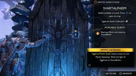 Brok와 Sindri가 넣은 장치에서 Mimir를 수집한 다음 새로 획득한 Yggdrasil Realm Seeds 를 사용하여 Svartalfheim 으로 여행 하십시오 . Svartalfheim 에 도착하면 Tyr를 위한 퀘스트가 시작됩니다 .