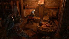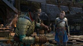 바로 왼쪽에는 Atreus가 소닉 애로우로 쏠 수 있는 카트가 있어 새로운 길을 열 수 있습니다. 그것을 앞으로 따라가서 밀어서 방해가 되지 않는 두 번째 카트를 이동합니다. 음악이 흐르고 있는 길 끝에 있는 문으로 길을 따라 안으로 들어갑니다. 악기를 연주하고 있는 Raeb에게 말을 걸면 그가 당신을 뒷문으로 보낼 것입니다. Raeb에게 두 번째로 말을 걸면 In Service of Asgard 라는 호의를 받을 수 있습니다 . 뒷문으로 계속 나가면 Sindri가 다시 한 번 말을 걸어 나침반을 줍니다. 길을 따라 왼편에 있는 드워프 집에 Hacksilver 가 있습니다. 원한다면 그것을 잡으세요.