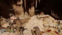 아트레우스에게 소닉 애로우를 발사하여 전방의 통로를 연 다음 틈을 기어오라고 지시하십시오. 반대편 에는 Wretches 가 지속적으로 재생성되는 것을 막기 위해 처치해야 하는 Bergsra Mother 가 있습니다. Bergsra Mother 가 있던 곳 뒤에 보트가 있으니 더 깊이 탄 채 광산으로 들어가십시오.