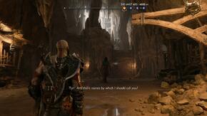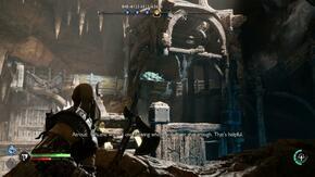앞에 큰 잠긴 문이 있습니다. 아트레우스에게 네 개의 걸쇠에 소닉 애로우를 발사하고 안으로 들어가라고 지시합니다. Einherjar 에 의해 즉시 방해를 받게 되므로 전투에 대비하십시오. 새로 찾은 친구와 함께 작업을 마치면 문을 아래로 내리세요. 마침내 내부에 누가, 또는 실제로 무엇이 있는지 알아낼 시간 입니다. 펼쳐지는 컷신을 감상하세요.