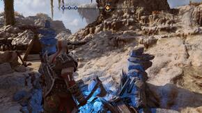 이제 리바이어던 도끼를 사용하여 다른 수로를 얼려 갈고리 발사 지점을 높이고 더 높은 곳으로 점프할 수 있습니다. 플랫폼에 도착하면 Atreus에게 이전의 잔해에 소닉 애로우를 발사하도록 지시하십시오. 그러면 반대편으로 이동하게 됩니다. 문으로 걸어가는 동안 오딘의 까마귀 중 하나 가 벽에서 엿보고 있습니다. 당신이 가로 질러 흔들면 근처에 노란색 상자도 있습니다. 모든 작업이 끝나면 마지막 문으로 가십시오. 반대편에는 Hacksilver 와 Slag Deposits 가 있는 빨간 상자가 있습니다. 벽의 틈을 통해 크롤링하십시오.