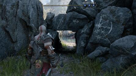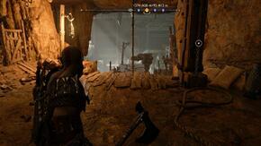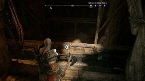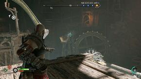 끝나면 기차를 타고 이동합니다. Forge 에서 나오면 Atreus를 따라가는 통로 위로 Odin's Ravens 중 하나가 날아갑니다. 인공물 트랙 끝에 있는 나무 패널 무리를 부수 십시오. 이 지역에서 Nornir 상자 도 찾을 수 있지만 열려면 추가 장비가 필요합니다. 대신 표시된 작은 틈을 기어 들어가 준비하십시오.