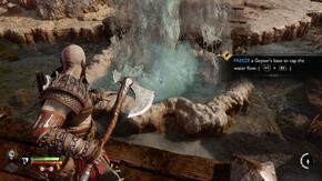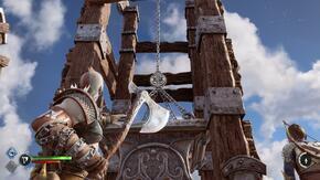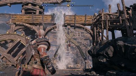 밖으로 나가서 당겨질 수 있는 금속 사슬이 나올 때까지 뒤로 물러나십시오. 짜증나게 막혔지만 아트레우스가 소닉 애로우를 발사하여 제거할 수 있는 파편 더미가 바로 아래에 있습니다. 체인을 당기고 로프를 아래로 밉니다. Atreus를 방 뒤쪽의 더 높은 곳으로 부스트하세요. 바퀴 옆에 있는 물의 흐름을 멈추고 아트레우스에게 크랭크를 돌리라고 지시하십시오. 이렇게 하면 막힘이 발생하여 바퀴가 계속 회전하는 동안 도끼를 회수할 수 있습니다.