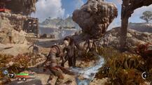 처음에는 L2 및 R2 버튼을 사용하여 뗏목을 당길 것이지만 작업이 강화됨에 따라 원 버튼을 으깨야 합니다. 육지에 도착하면 한 명의 Einherjar 와 더 싸워야 하며, 그런 다음 게이트웨이에 들어갈 수 있습니다. 이것 으로 티르를 위한 퀘스트 가 완료됩니다 . Sindri's House 로 돌아오면 밖에 있는 Atreus와 대화한 다음 문으로 가십시오. 이 시점에서 Huldra Brothers의 작업장을 방문하여 장비와 장비를 업그레이드할 수 있습니다. 끝나면 뒷방에서 미미르와 비공개로 상담하세요.