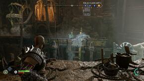 Jarnsmida Pitmines 에서 나옵니다 . 큰 수도관에 도끼를 던져서 얼립니다. 이렇게 하면 반대편으로 점프할 수 있는 구멍이 생깁니다. 여기에 Nornir 상자 가 있고 왼쪽에 빨간색 상자가 있습니다. 또한 근처 에 The Pit-Mine 이라는 룬 읽기 형태의 Lore 가 있습니다. 마지막 화로에 불을 붙이려면 먼저 머리 위의 물 공급을 다시 한 번 동결해야 합니다. 오른쪽으로 계속 진행하여 Atreus를 선반 위로 밀어 올리세요. Atreus에게 바퀴를 돌리라고 지시한 다음 기어를 고정하여 건너뛰십시오. 오른쪽에는 Blades of Chaos 로 이동할 수 있는 도르래가 있어 앞으로 계속 진행할 수 있습니다. 오딘의 까마귀 중 하나가 있습니다.이 영역에서 왼쪽에 있습니다.