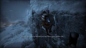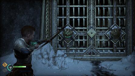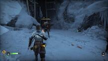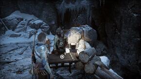 엘리베이터의 스위치에 접근하여 Sindri가 고칠 수 있는지 기다리십시오. 정상에 올라 컷신을 촬영하세요. 시네마틱이 끝나면 방금 들어간 지역 뒤쪽의 문으로 가십시오. Atreus는 Kratos의 힘이 충분하지 않으므로 Sindri에게 열어 두십시오. Hacksilver 및 자원 이 포함된 바로 오른쪽에 있는 빨간 상자를 통과하여 엽니다 . 터널을 따라 내려가 Draugrs 를 처리한 다음 가연성 냄비에 불을 붙여 또 다른 빨간 상자를 엽니다. 터널 기슭에는 소닉 애로우로 제거할 수 있는 나무 장벽이 있으므로 통과하십시오.