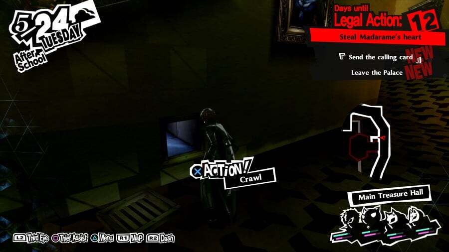 궁전의 마지막 구역에서 오른쪽 복도의 왼쪽 벽에 있는 통풍구를 찾으십시오.