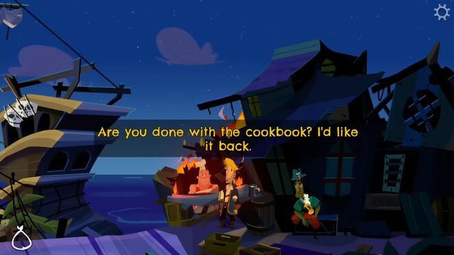 Scumm bar로 돌아가서 요리사에게 책을 건네면 요리사가 요리를 시작하므로 주의가 산만해집니다.