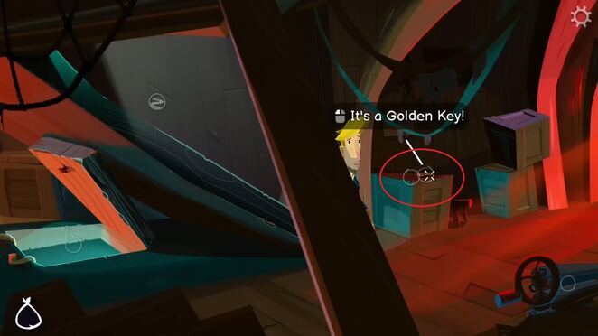 열쇠를 받으면 판잣집을 나와 별채 옆에 서십시오. 판잣집 건너편에 있는 건물입니다. 문에 있는 열쇠를 사용하여 안으로 들어갑니다. 이제 외부 내부에는 상호 작용할 수 있는 많은 것들이 있지만 바닥에 있는 작은 금속 조각을 제외하고는 중요하지 않습니다. 동전은 아니지만 충분히 가깝습니다. 그것을 집어 들고 Scurvydogs Shack으로 돌아가십시오.