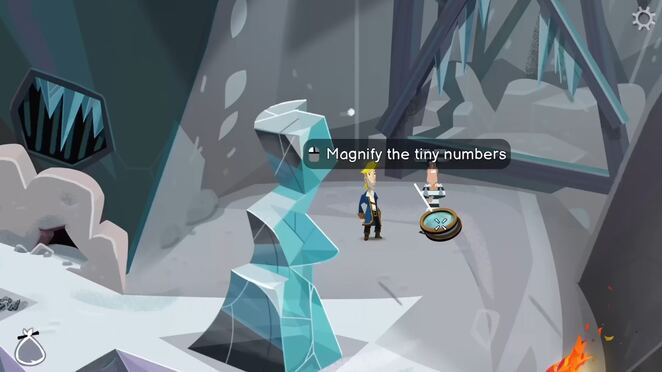 얼음 성으로 향합니다. 실제로 성에 들어가기 전에 약간 올라가야 합니다. 그곳에서 얼음의 여왕을 만납니다. 여기서 가장 먼저 해야 할 일은 불 옆에 있는 성냥갑을 집는 것입니다.