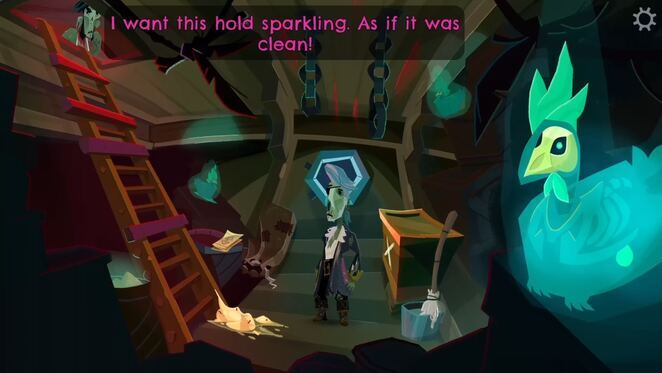 시네마틱이 작동하여 병참장이 LeChuck과 이야기하는 것을 보여주고 그녀는 당신이 그의 승무원에 합류하려고 하는 것에 대해 알려주고 항해를 준비하면서 상황에 대한 업데이트를 제공할 것입니다.