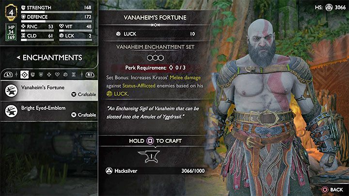Hacksilver는 상점에서 마법과 유물을 만드는 데 사용할 수 있습니다 . 통계에 유용한 보너스를 제공하는 경우 구매하십시오.