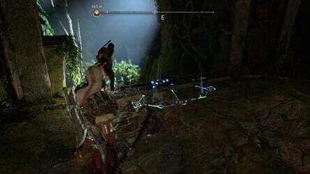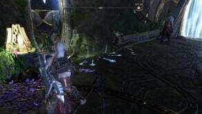그 로아의 비밀 중에 발견 . Light Elf Warriors 를 처음으로 물리친 후 계속 진행하려면 가로질러 싸워야 합니다. 직진하는 대신 왼쪽으로 갈 수 있습니다. 칼날을 사용하여 황혼의 돌을 휘두르고, 오른쪽으로 휘두를 때 도끼를 튕겨냅니다. 그런 다음 다음 그래플 포인트를 사용하여 전설 상자가 있는 곳으로 이동합니다.