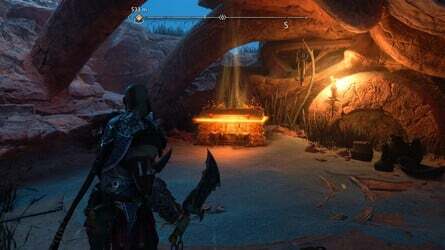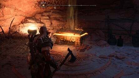 The Reckoning 을 완료한 후 발견 했습니다. 아치 길로 벽을 오르면 나오는 전투실에 도달하게 됩니다. 올라가면 돌아서서 아래의 황혼의 돌에 도끼를 던져 매듭이 있는 벌집에 맞도록 합니다. 다시 내려가서 새로 노출된 그래플 포인트를 사용합니다. 따라 올라간 다음 전설 상자로 이동합니다.