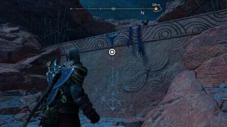 룬 읽기는 매우 쉽게 발견할 수 있습니다. 이 새겨진 메시지는 밝은 파란색으로 빛나므로 다른 환경에서 눈에 띄게 됩니다.