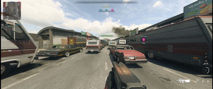 그러나 가장 논란이 된 것은 영화 Sicario 의 기억에 남는 장면을 약간 닮은 Santa Sen Border Crossing(6v6의 경우 더 작은 버전 및 20v20 Invasion 변형에서 사용 가능)의 지도였습니다 . 우리는 중간에 자동차로 꽉 찬 도로가 있고 측면에는 긴 거리가 있습니다(물론 저격수가 있습니다). 이제 COD 커뮤니티의 일반적인 감정은 저보다 훨씬 더 부정적으로 보이지만 작은 모드보다 침공에서 맵이 훨씬 잘 작동한다고 생각합니다.