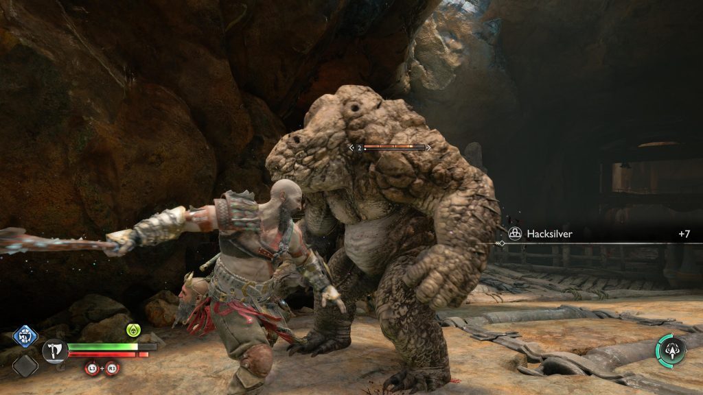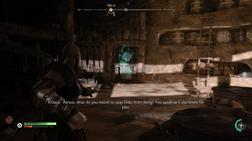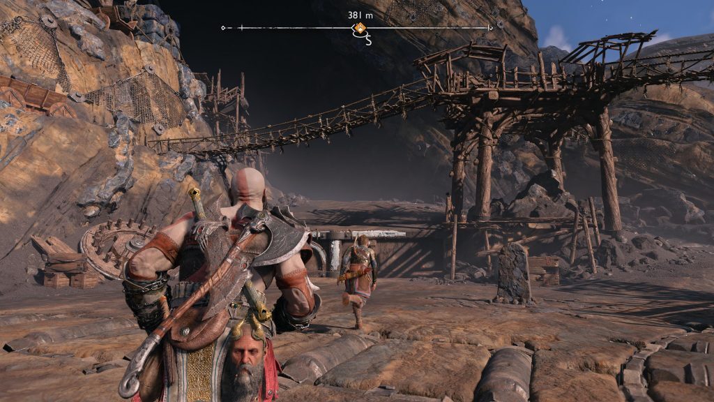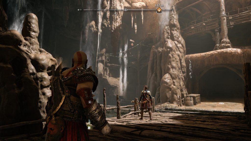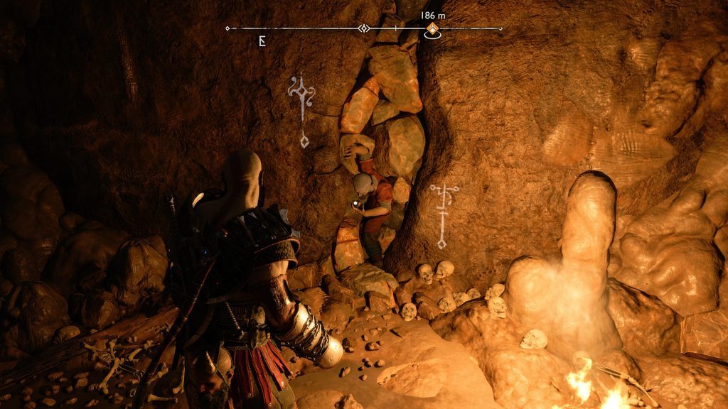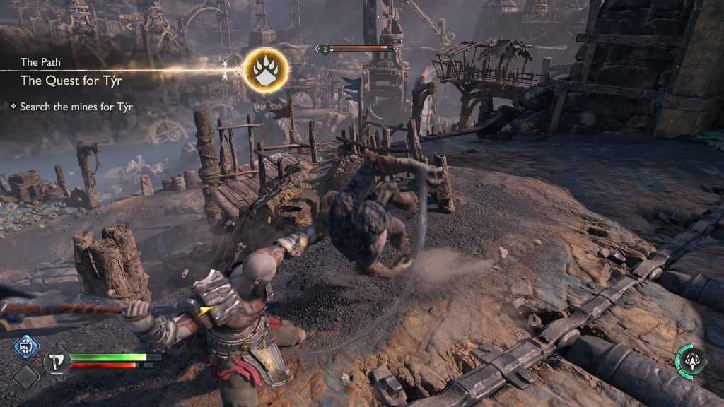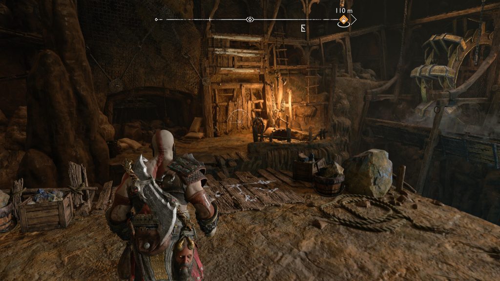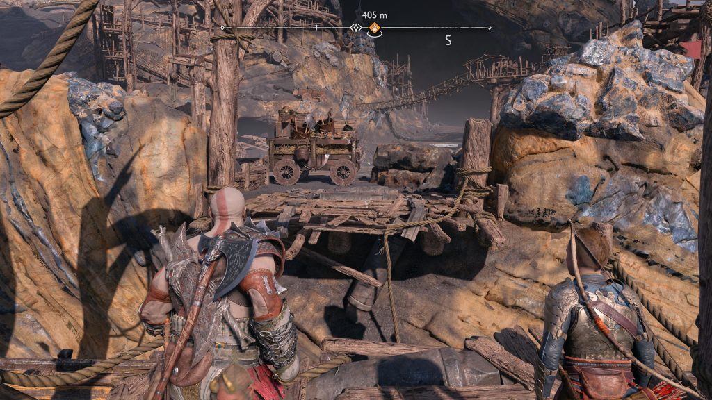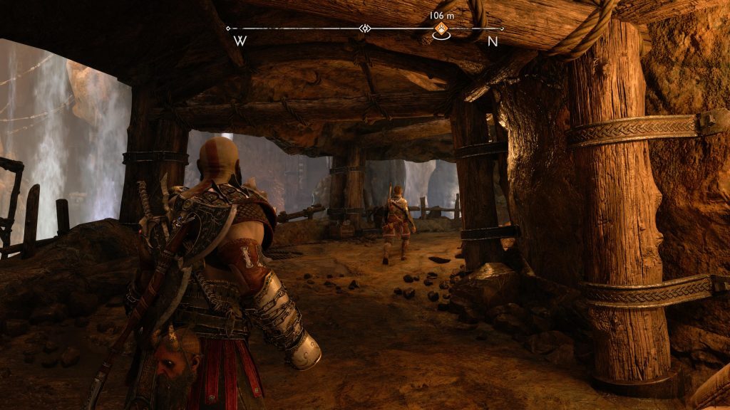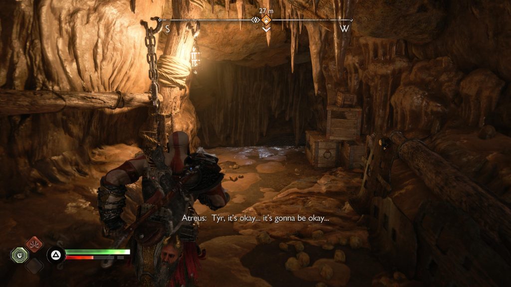 아래 연습은 Kratos와 Atreus가 광산에 충돌했을 때 시작 되어 Kratos와 Atreus가 Tyr에게 광산을 떠나도록 설득하는 컷신 후에 끝납니다.