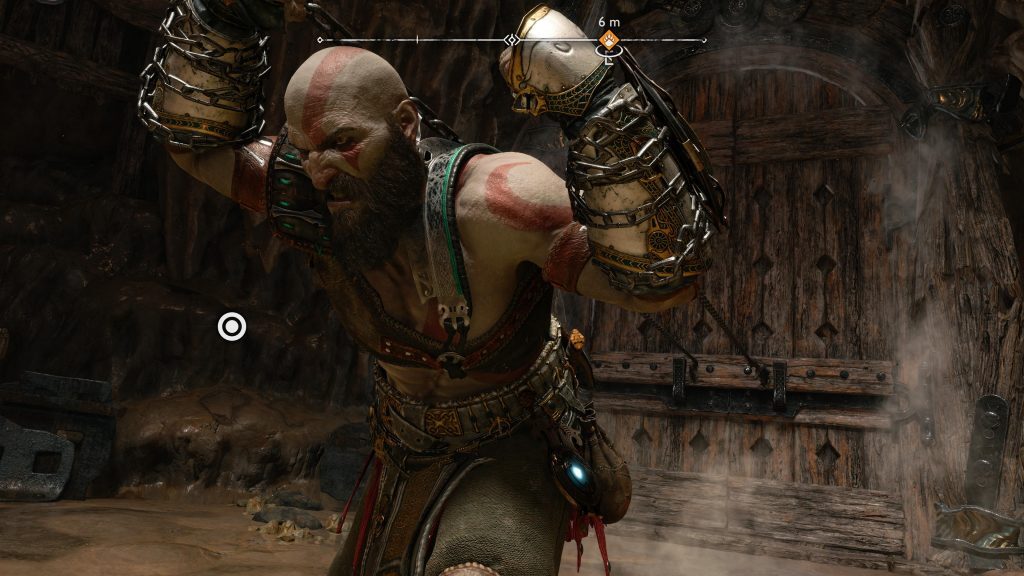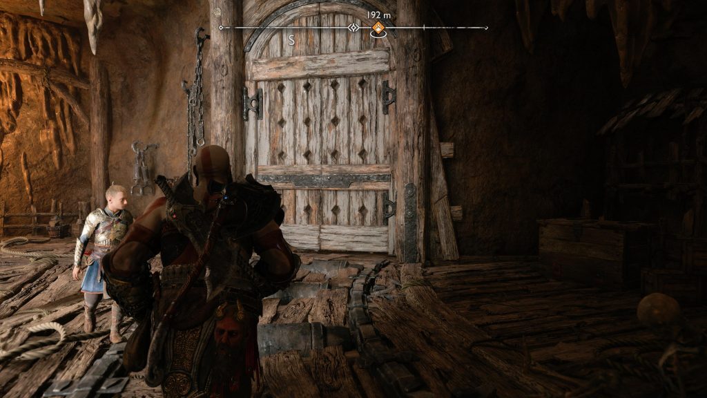 나갈 때 아트레우스의 화살을 사용하여 방의 큰 문에 있는 4개의 경첩을 부수십시오. 경첩이 사라지면 문과 상호 작용하십시오. 그러나 열 수 있기 전에 새로운 적, Einherjar에 의해 방해를 받을 것입니다. 그들을 돌본 후 문으로 돌아가십시오.