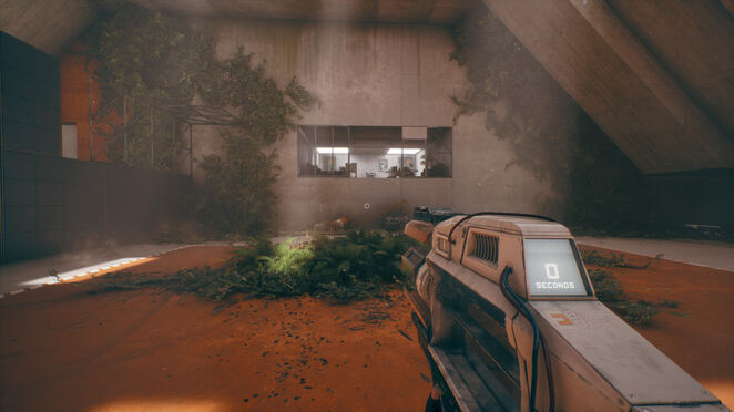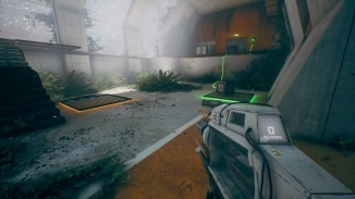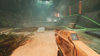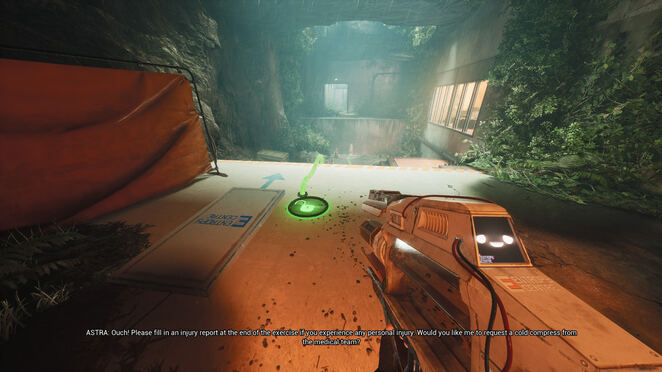 방을 나와 이전에 당신을 막고 있던 잔해를 살펴보십시오. 주변에 주황색 하이라이트가 보이시죠? 즉, 파편에 HED를 사용하여 파편이 무너지기 전으로 되돌릴 수 있습니다! 그렇게하고 통과하여 게임 룸으로 계속 진행하십시오.