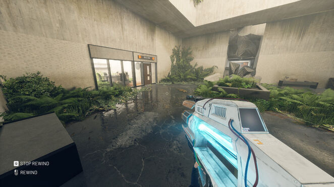 Cataclysm Management 방에 먼저 들어가십시오. 왼쪽 뒤에 있는 컴퓨터 터미널 하나가 켜져 있지만 아무 메시지도 표시되지 않습니다. 그것과 상호 작용하여 엘리베이터를 호출하십시오. 엘리베이터가 무너질 것입니다. 그 위에 서서 되감아 최상층에 도달하십시오. 왼쪽에는 전기 패널이 있습니다. 그것을 집어 들고 엘리베이터로 돌아갑니다. 되감기를 되돌려 바닥으로 다시 충돌하십시오. 우리는 전기 패널을 가지고 한 층을 올라가야 합니다. 반만 되감고 여기 문 옆에 있는 상자에 넣으세요. 이 계단을 따라 다음 퍼즐로 이동하세요.