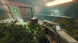 다음 퍼즐에 접근하면 왼쪽에 이 사무실이 보입니다. 창살을 통해 전기 패널을 되감아 도어를 엽니다. 지금까지 게임의 9번째 메시지에 대한 터미널을 읽으십시오.
