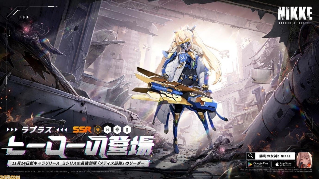 Level Infinite는 오늘 2022년 11월 21일(월), 게임 제작사 SHIFT UP와 손을 잡고 제작한 스마트폰용 신작 게임 「승리의 여신:NIKKE」(이하, NIKKE)에 있어서, 11월 24일(목 )에 본작 출시 후 첫 업데이트를 실시하기로 결정했습니다. 이번 업데이트에서는 새로운 캐릭터 '라플라스'가 등장하는 것을 발표했습니다.