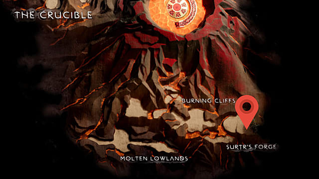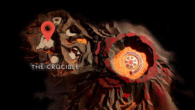 이 업그레이드는 검색하는 데 약간의 시간이 걸립니다. 먼저 Muspelheim Seed 반쪽 두 개 를 찾은 다음 The Crucible Favor 를 완료 해야 합니다. 완료되면 위의 지도에 표시된 지점에서 상자 를 열고 여섯 번째 혼돈의 불꽃을 수집해야 합니다.