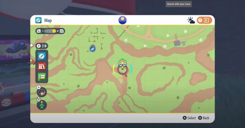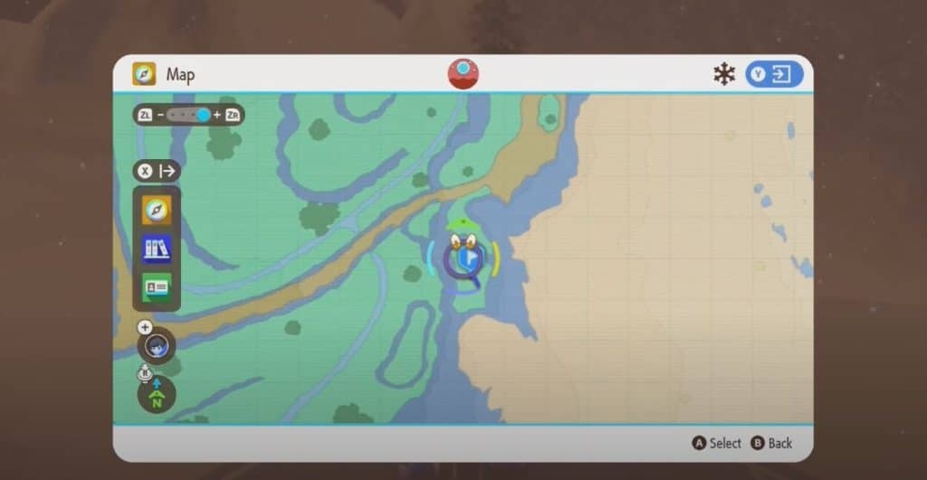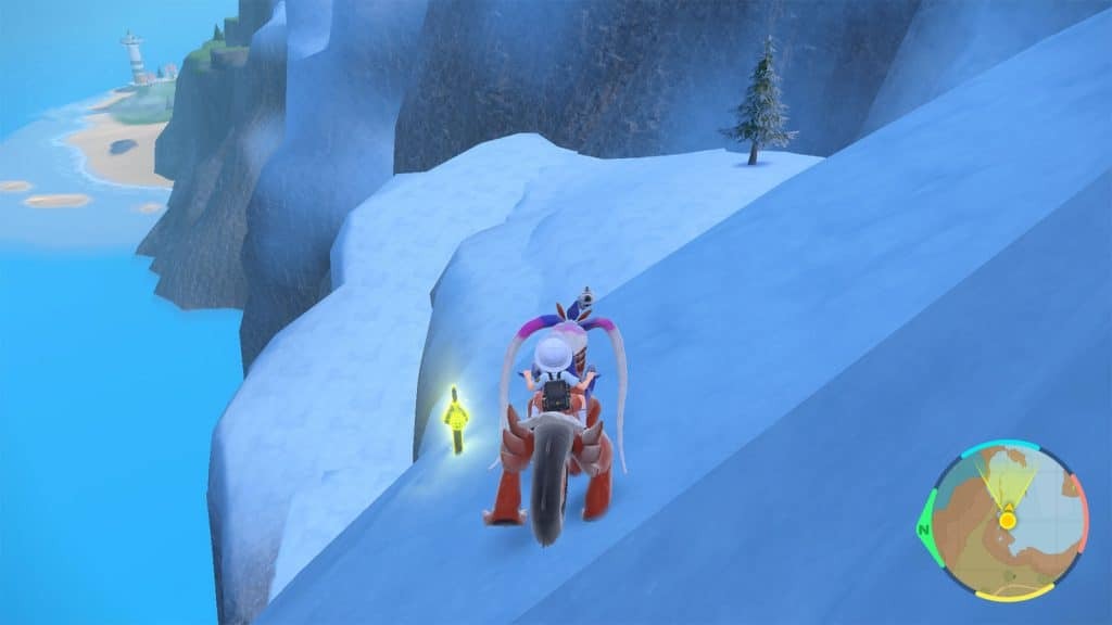 포켓몬 리그 빠른 이동 지점의 북동쪽에서 노란색 말뚝을 찾을 수 있습니다. 그레이트 크레이터 서쪽 절벽 아래에 있습니다.