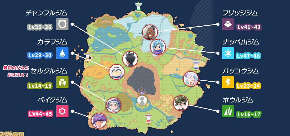 본작은 어디서나 체육관에 도전하거나 아지트에 탑승할 수 있지만, 여기에서는 레벨별 추천 공략 차트를 소개.